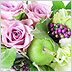 | 花 材 | バラ(薄紫)・スプレーカーネーション・りんご・アイビー・ルスカス・ベリー(アート) |