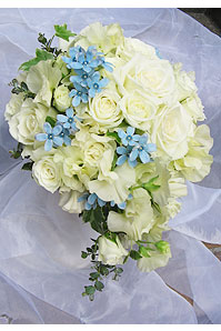 バラ・スプレーバラ・トルコキキョウ・ユーカリ・スイートピー・ブルースター