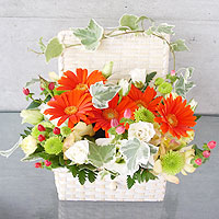 スプレーバラ・トルコキキョウ・モカラ・スプレーカーネーション・スプレーマム・ヒペリカム・アイビー