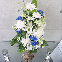 キク、デンファレ、レザーファン、スプレーマム、スプレーストック、デルフィニウム