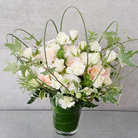 スプレーバラ・トルコキキョウ・アイビー・ピットストラム・アスパラ・ベアグラス・レザーファン・ドラセナ