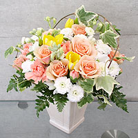 フリージア・カーネーション・スプレーマム・ストック・アイビー・レザーファン